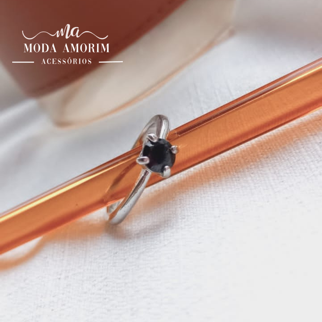 Anel Cristal Preto - Prata 925