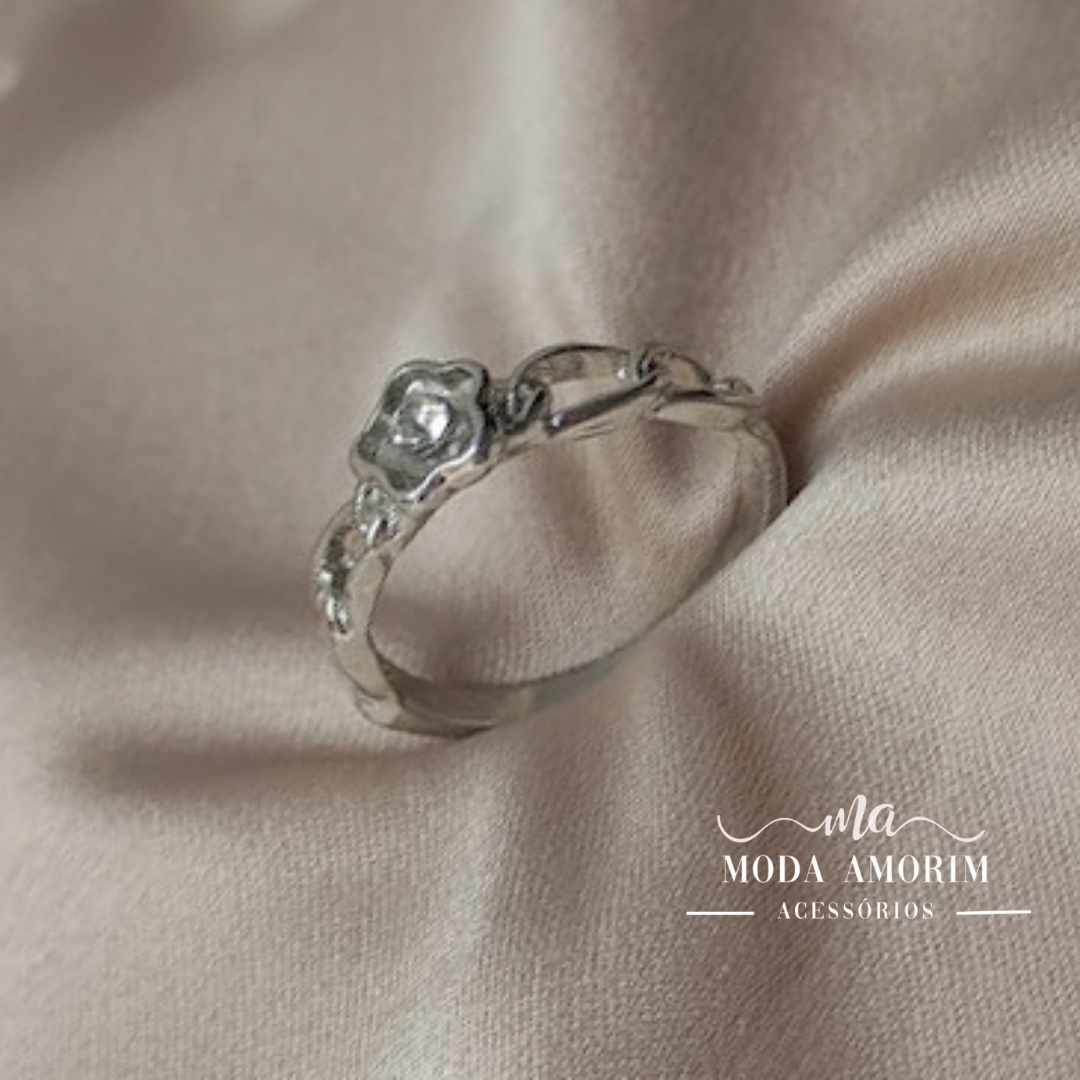 Anel Folheado Rosa Cristal - Folheado Prata 925