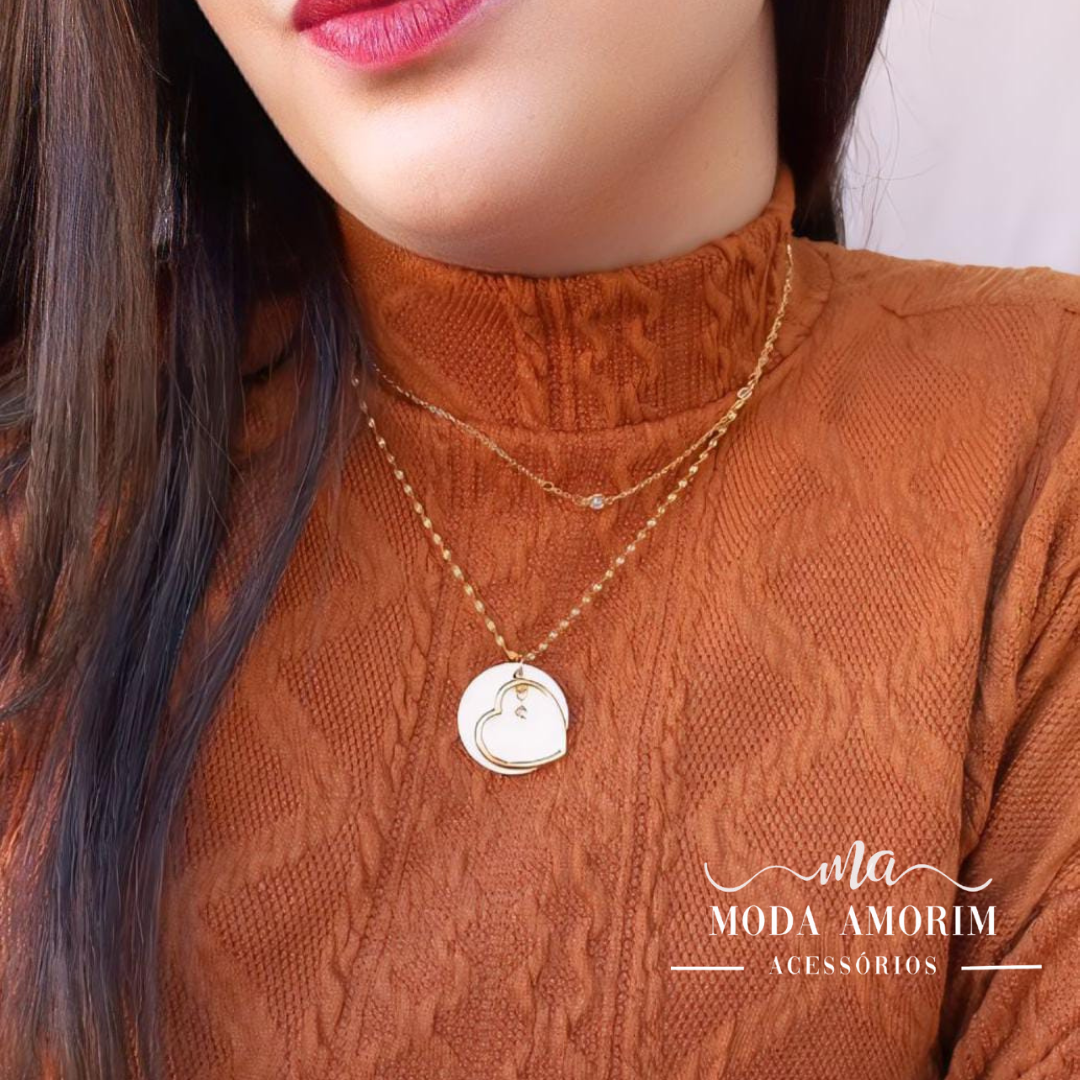 Colar Duplo Coração Vazado - Folheado Ouro 18K