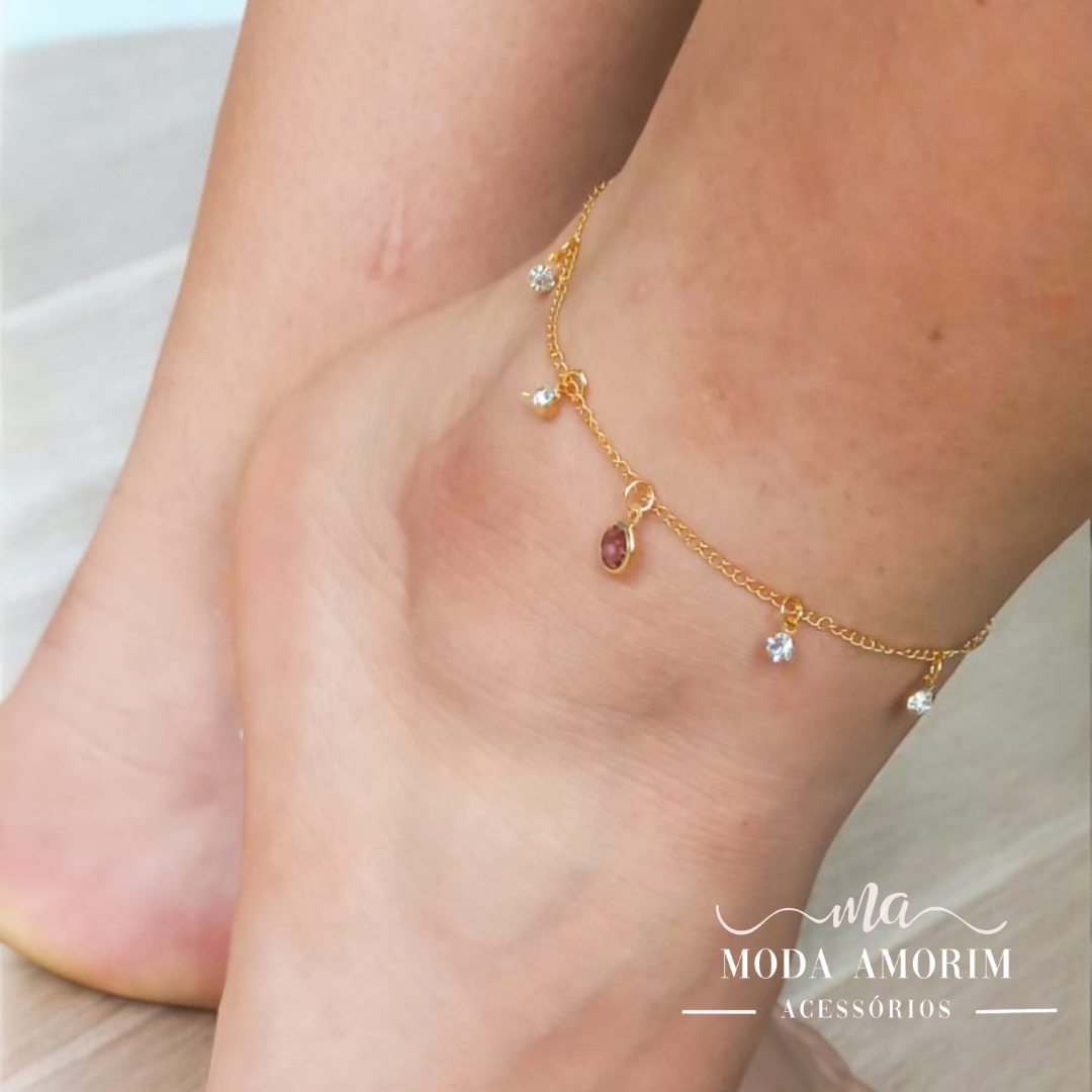Tornozeleira Cristal Rose - Folheado Ouro 18K
