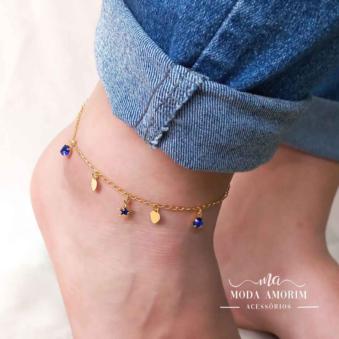 Tornozeleira de Estrelas Cristais - Folheada Ouro 18K